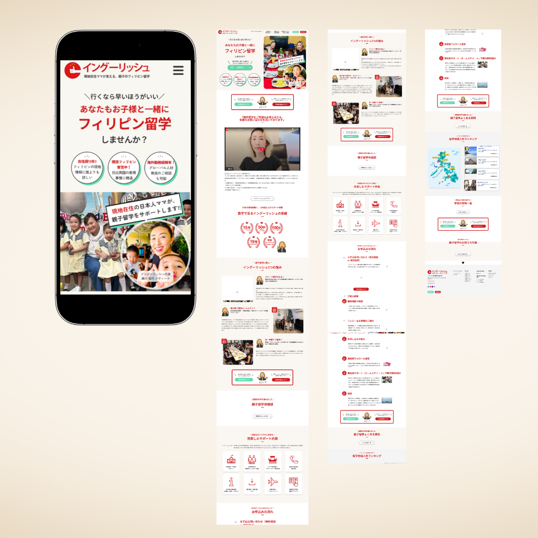 デザインデータをもとに、視認性や操作性を損なわないよう忠実に再現しつつ、ユーザーがストレスなく情報を取得できるよう実装しています。また、縦長LP特有の離脱を防ぐため、適切な余白設計やCTA配置を意識し、スクロールに応じた自然な導線を構築しました。さらに、スマートフォン表示だけでなくPC表示にも対応しサイト構築しております。